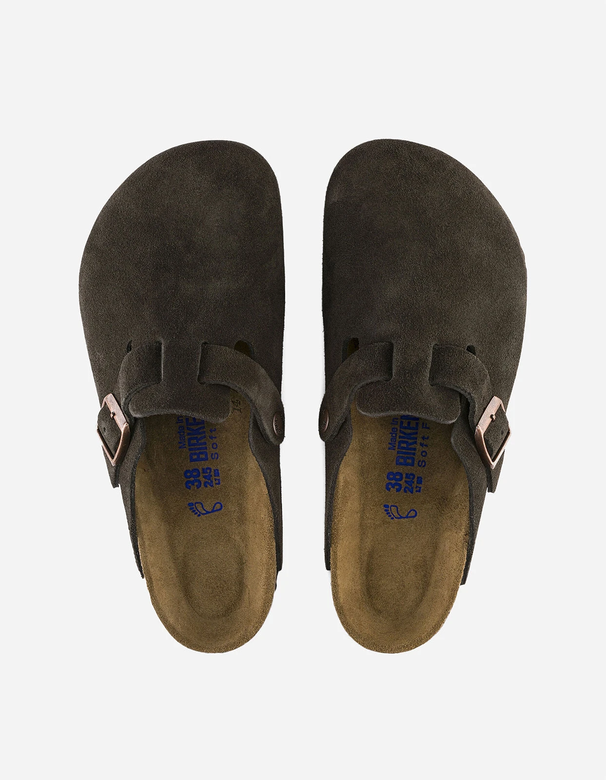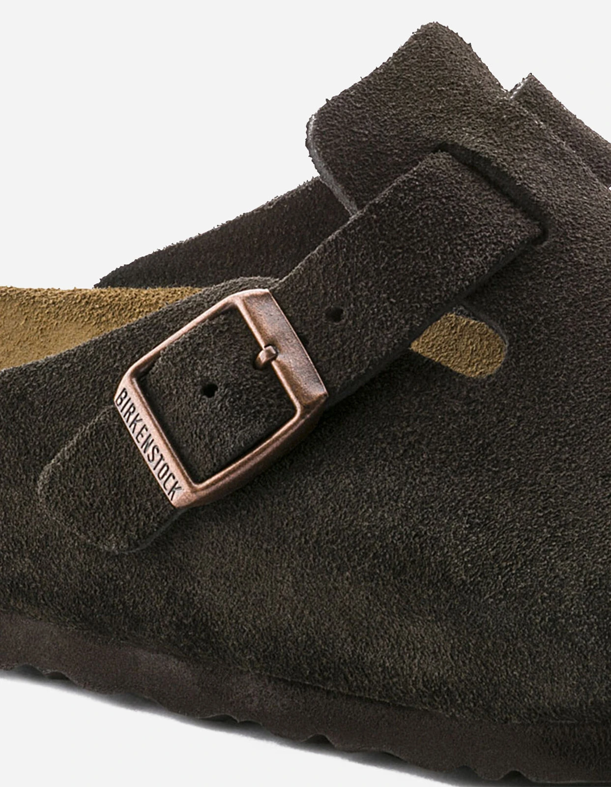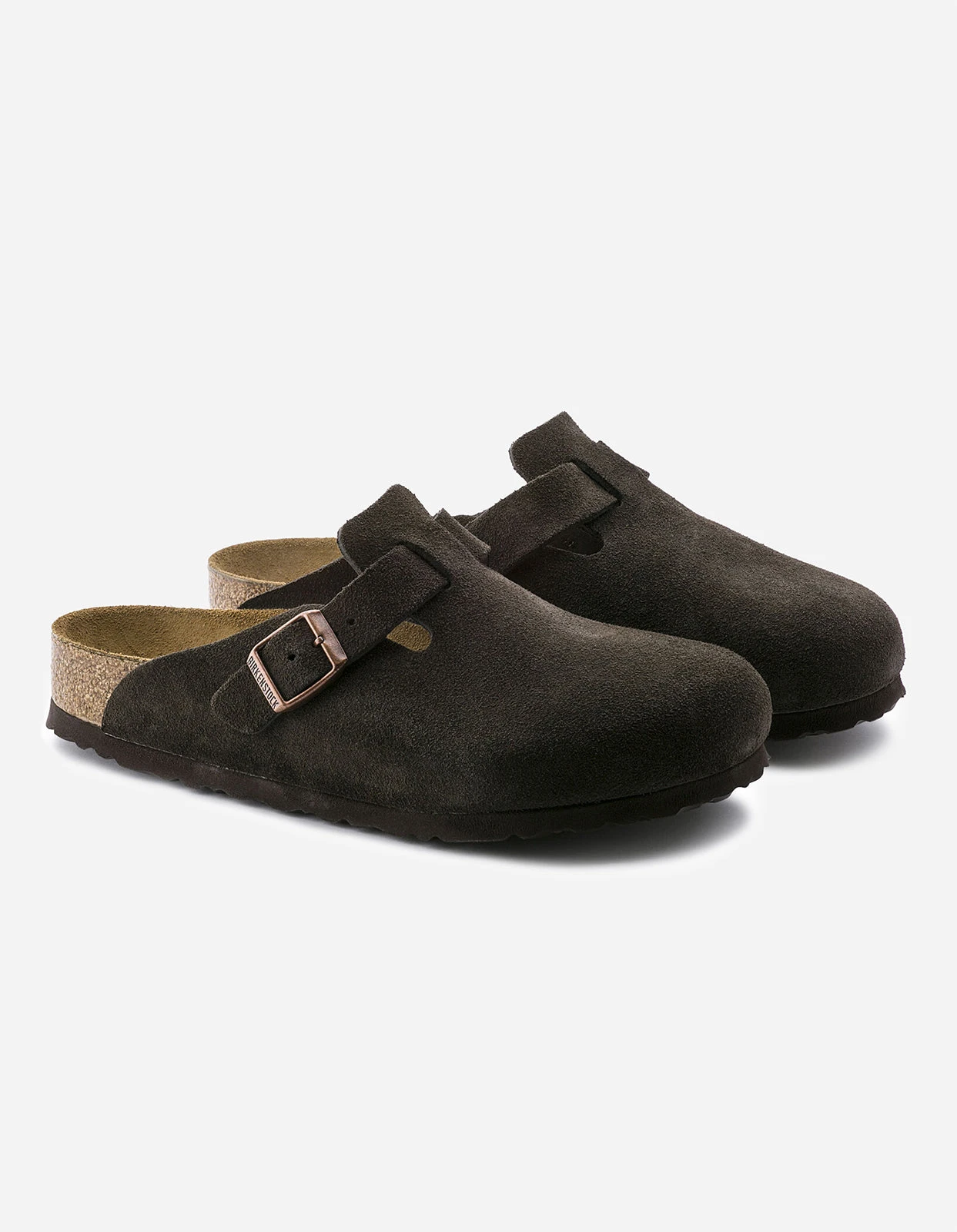 Birkenstock’s Boston clog features an integrated latex foam layer that provides additional cushioning to the cork footbed. The upper is constructed from a soft, lightly napped suede with a single adjustable buckle.