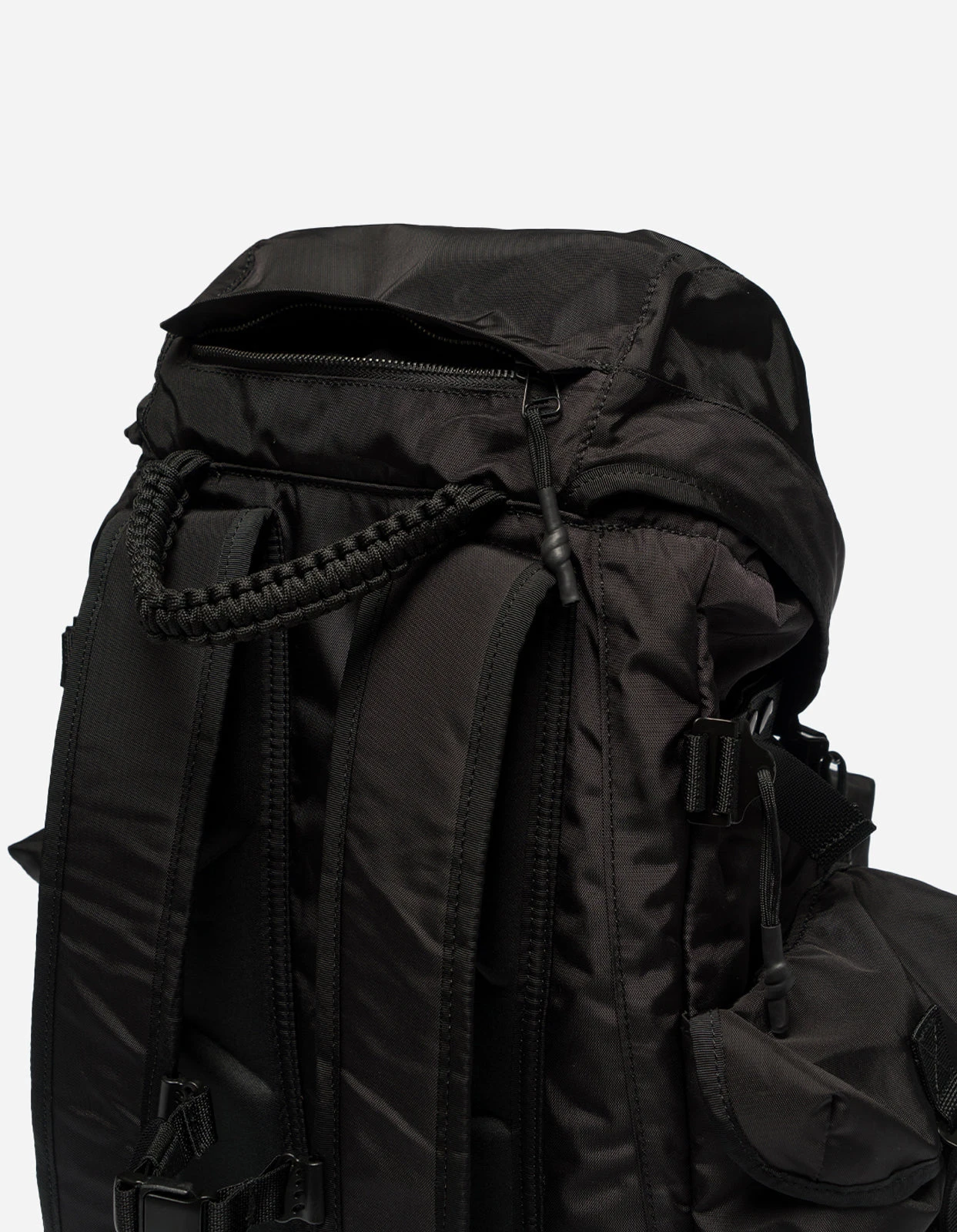 Premium high-capacity field backpack featuring three external ALICE style front pouch pockets, hidden slip side pockets and securing straps underneath. The adjustable brain and double cinched lip allow approx +50% height extension. Substantial quilted lining all over and a suspended laptop sleeve inside.