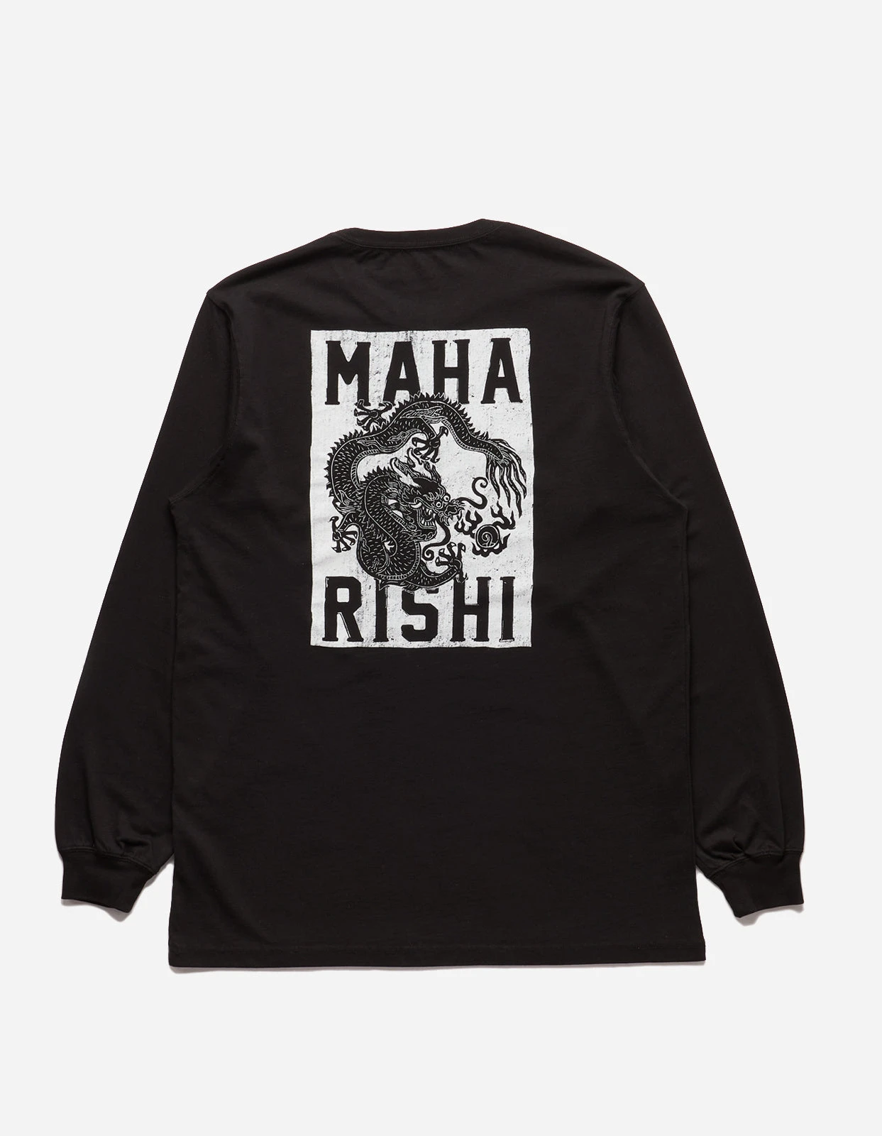 Long sleeve tee in organic cotton with a vintage woodblock dragon print on the reverse.