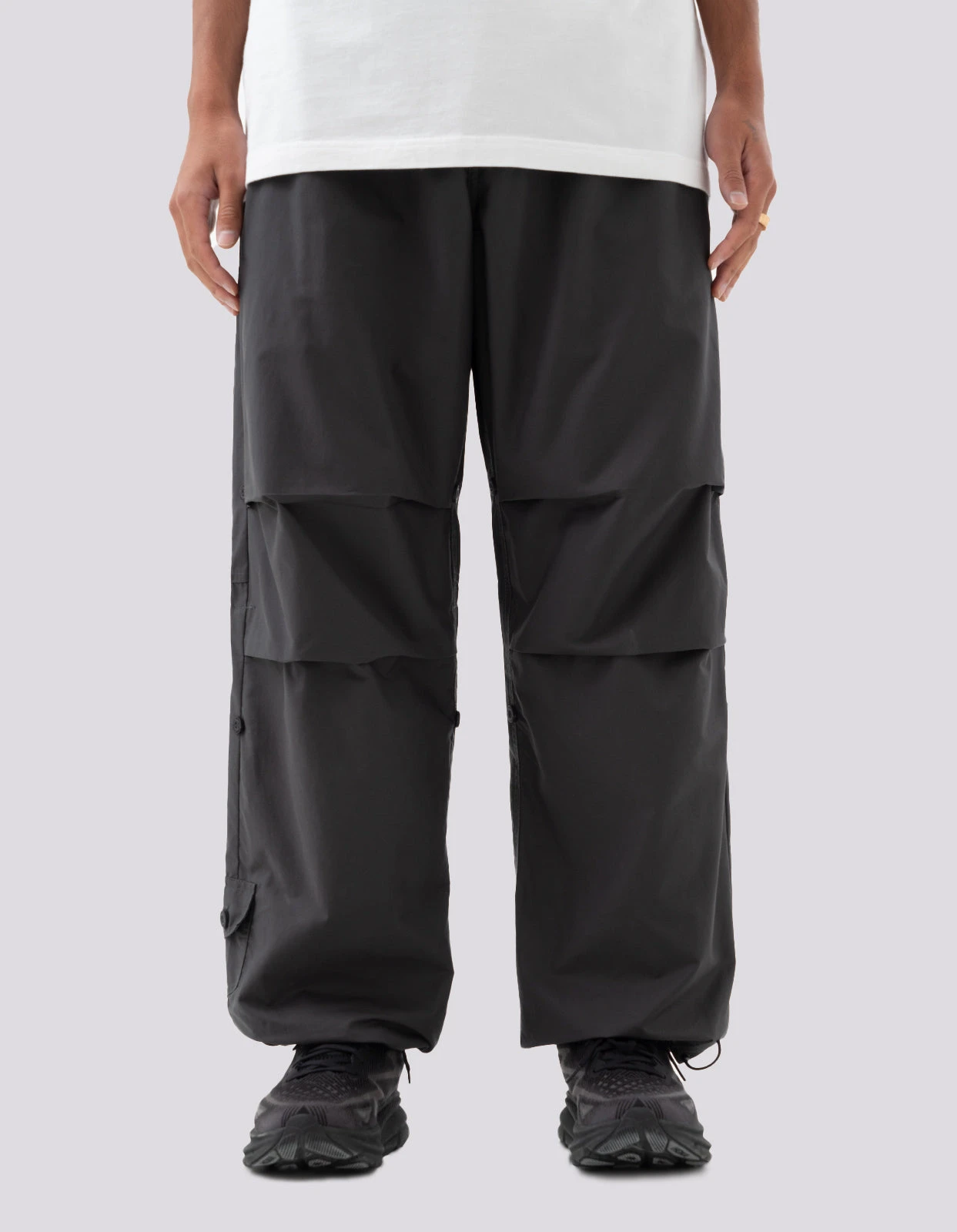 Loose fit charcoal Original Snopants®, cut from a water repellent organic cotton/recycled poly. Snocords® allow for a fully adjustable waist and hem, whilst darts at the knee provide an articulated shape for a free range of motion.