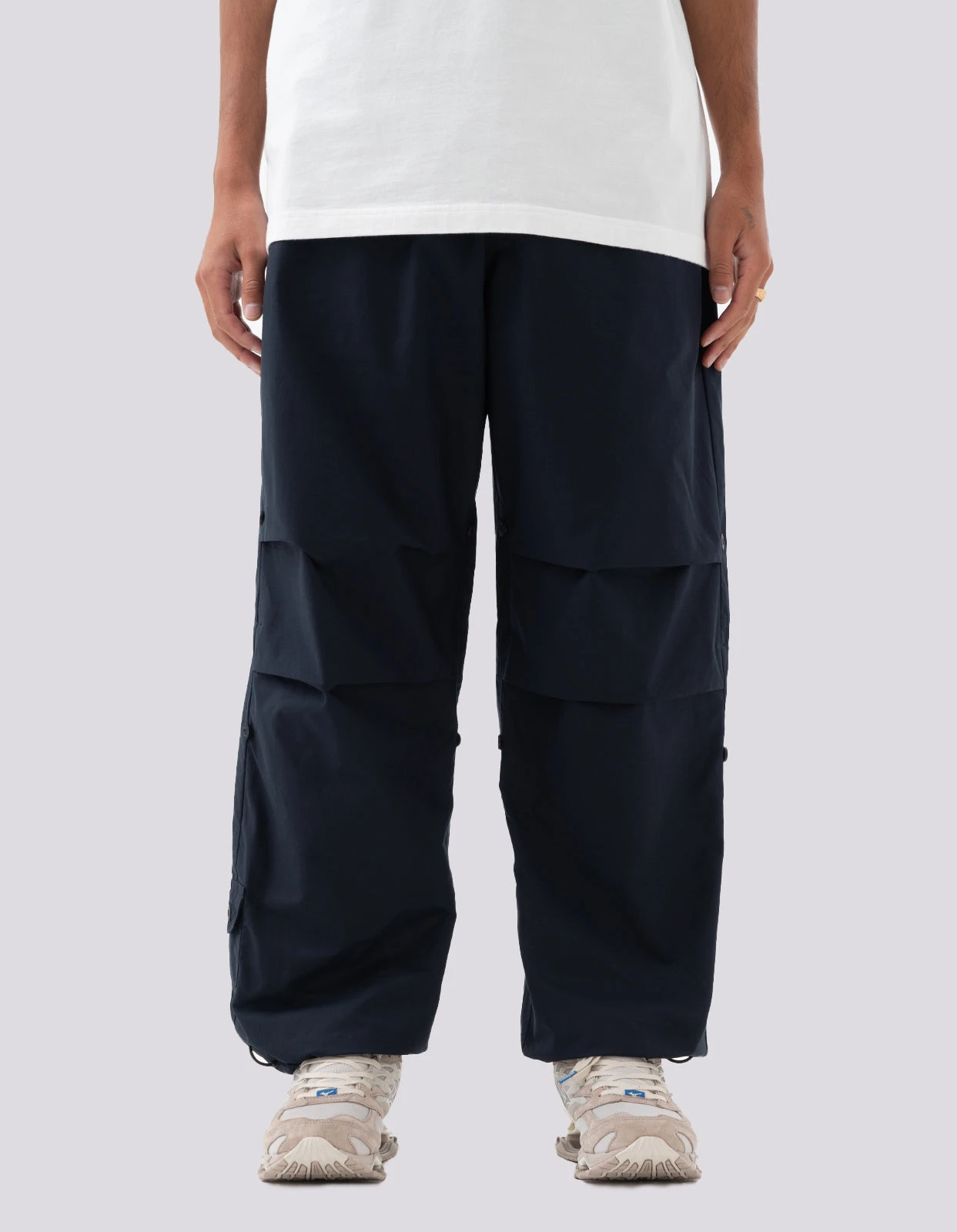 Loose fit navy Original Snopants®, cut from a water repellent organic cotton/recycled poly. Snocords® allow for a fully adjustable waist and hem, whilst darts at the knee provide an articulated shape for a free range of motion.
