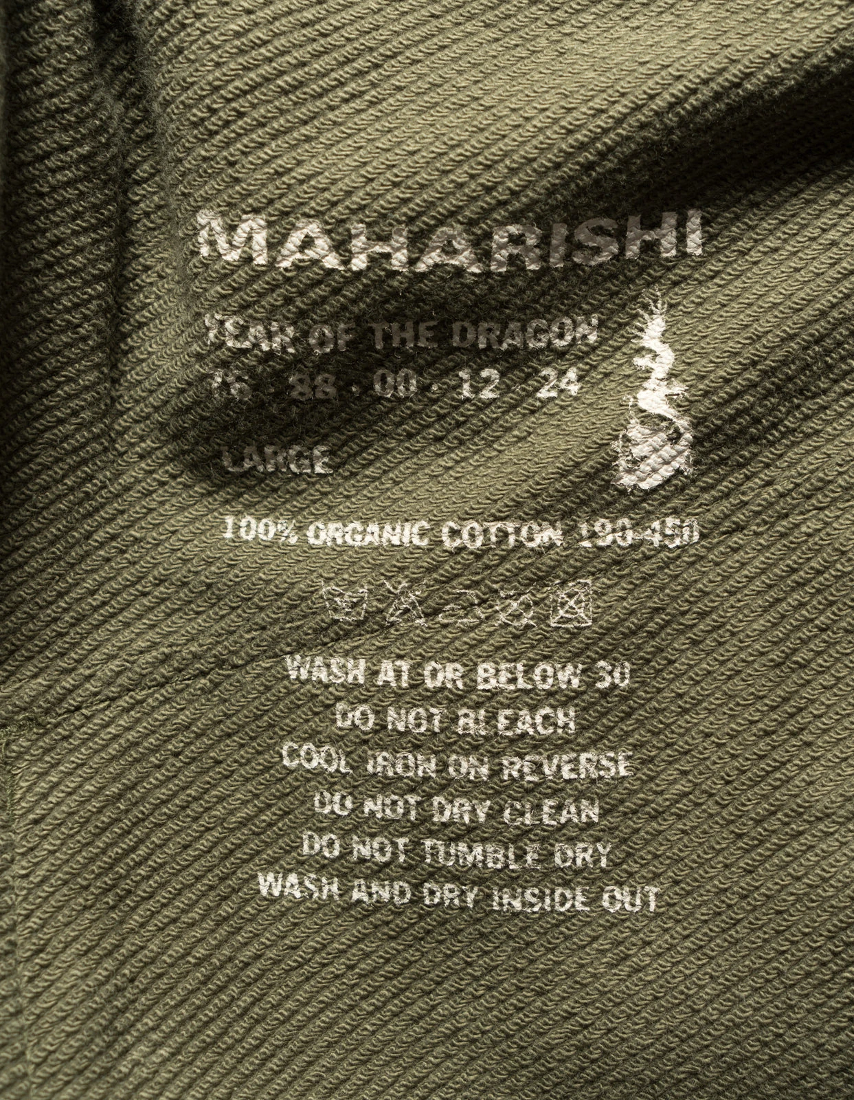 The perennial use of organic cotton aims to raise awareness and contribute to the reduced use of pesticides in the production of clothing materials. Every Maharishi collection utilises sweat and jersey grown without toxic pesticides or synthetic fertilisers.