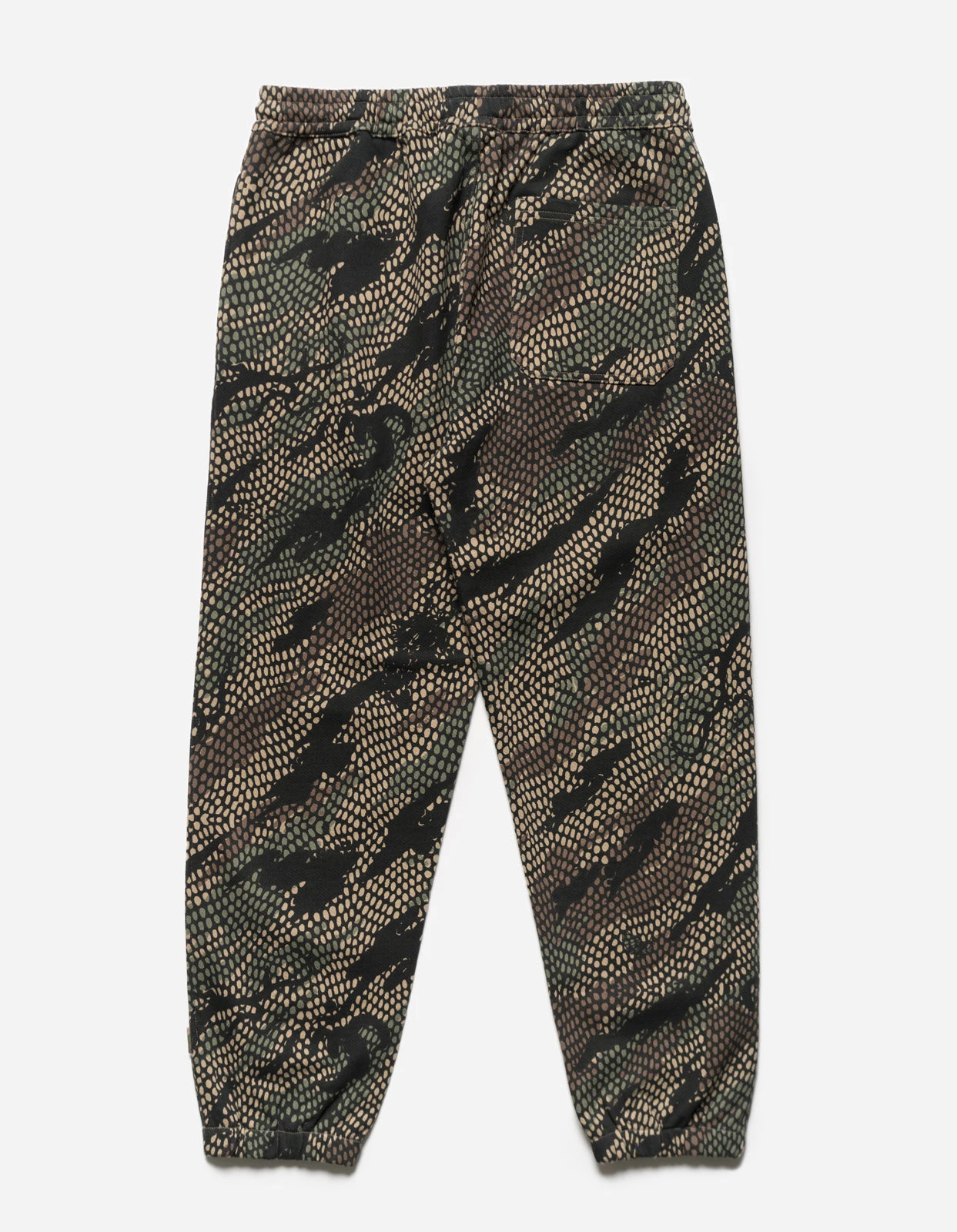 Straight fit woodland sweatpants, cut from heavyweight organic cotton sweat. Features subdued house camo DPM: Bonsai Dragon Scales all over, with a drawcord waist and cuffs for slight adjustment. A gusseted crotch allows for ease of movement.
