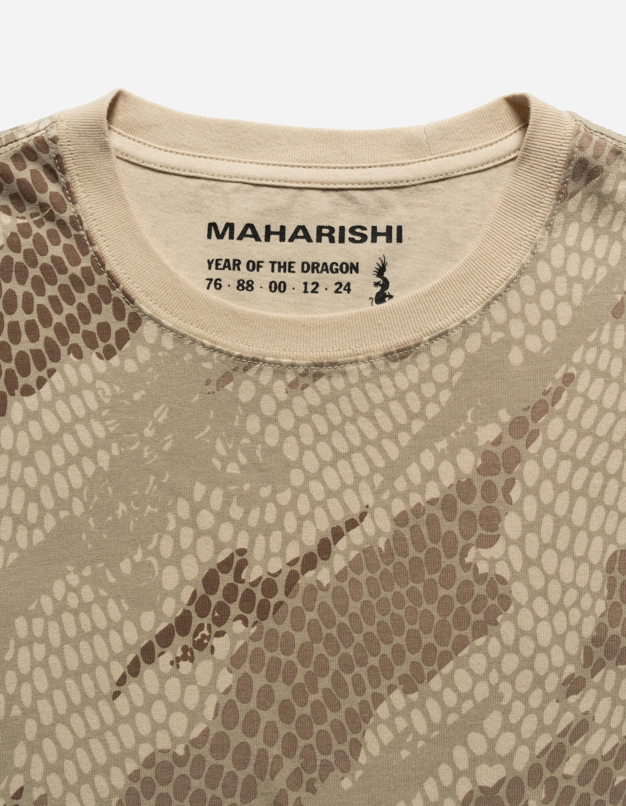 Relaxed fit short-sleeve T-Shirt in desert, featuring a subdued allover print house camo DPM: Bonsai Dragon Scales. Cut from a heavyweight organic cotton jersey.