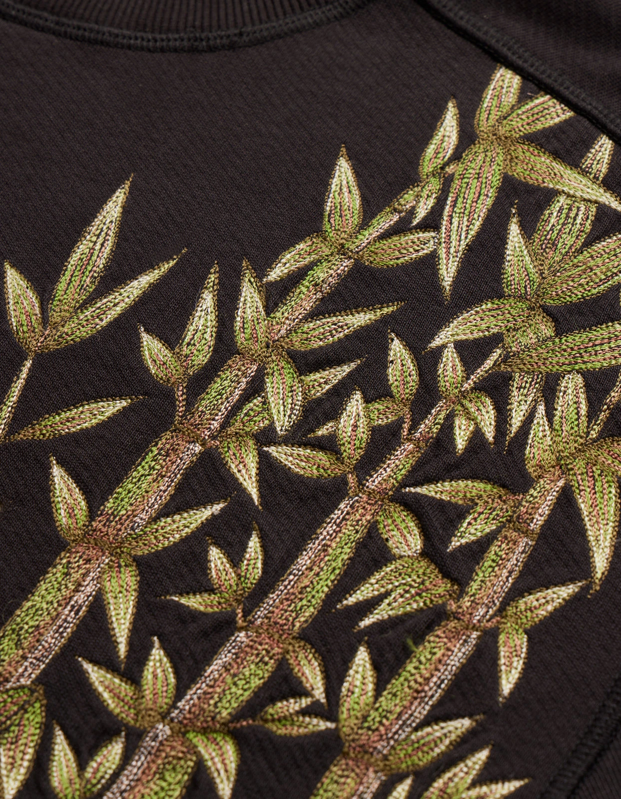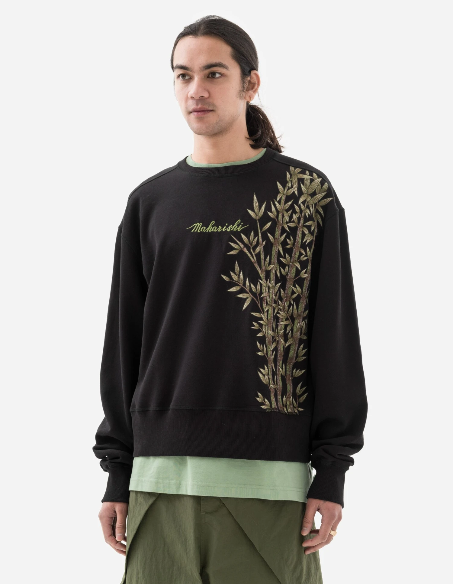 Crew neck sweatshirt features an intricate bamboo embroidery at the chest with Maharishi branding. Cut to a cropped fit, from an eco-conscious organic cotton sweat in black.