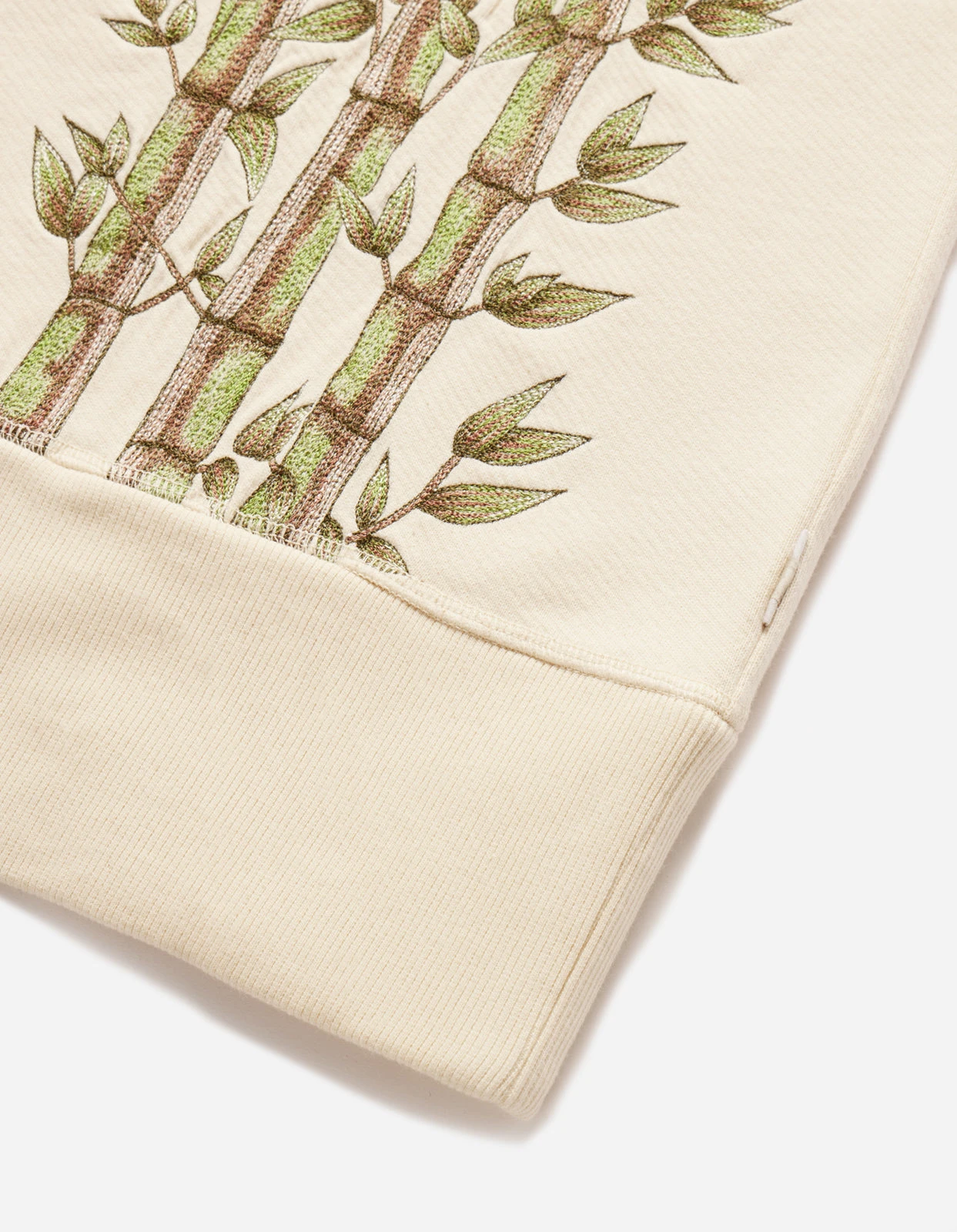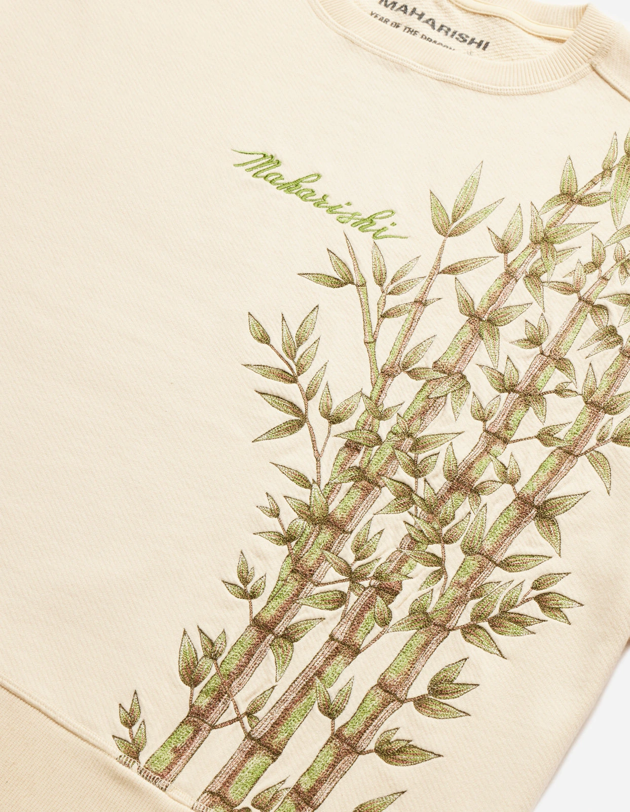 Crew neck sweatshirt features an intricate bamboo embroidery at the chest with Maharishi branding. Cut to a cropped fit, from an eco-conscious organic cotton sweat in ecru.