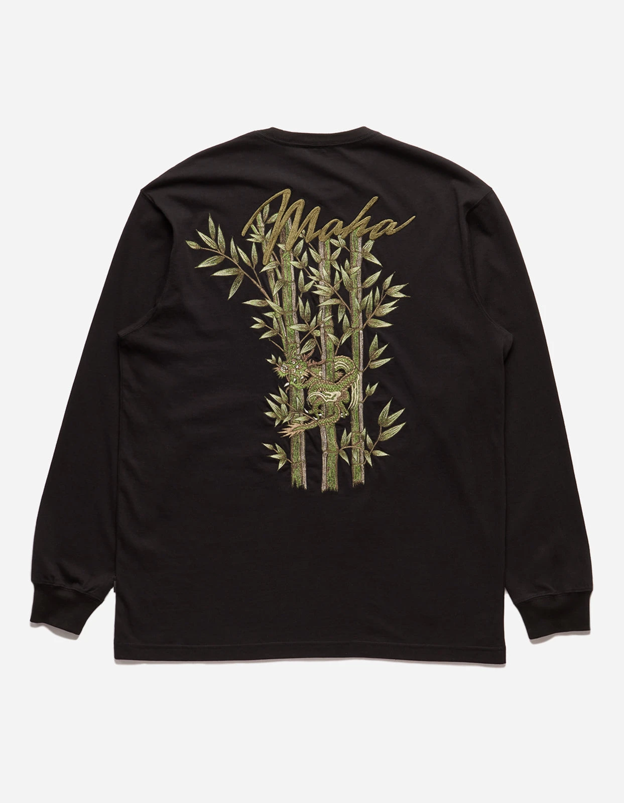 Long sleeve T-shirt in black features a Bamboo Dragon hand-machined embroidery at the reverse and Maharishi chest branding, crafted from an eco-conscious organic cotton jersey.