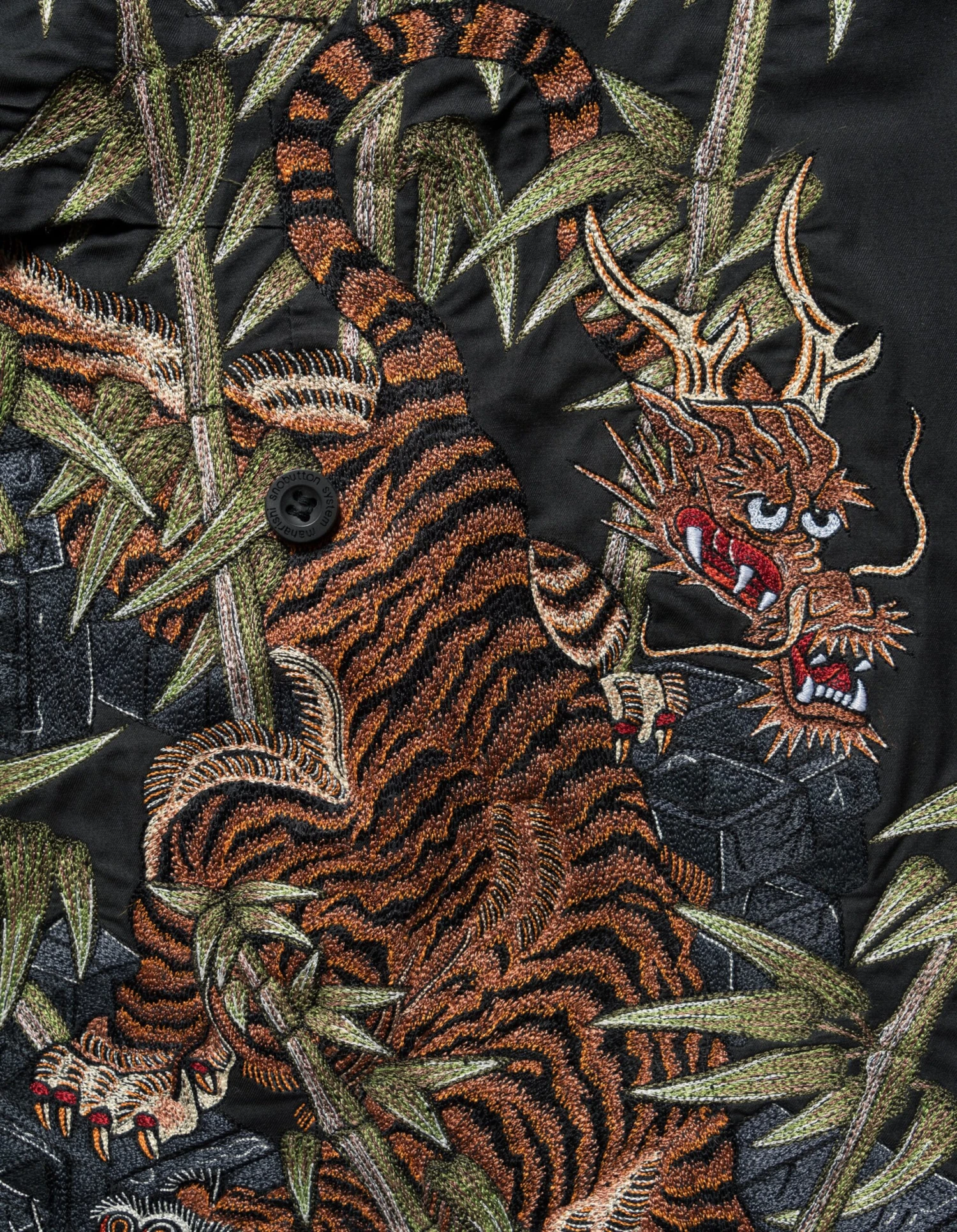 A tiger, a symbol of determination, is said to be one of the few species able to negotiate its way through a bamboo forest. The animal becoming one with the dense branches represents a harmonious society. The tiger’s strength calls the bamboo’s flexibility to its side to overcome nature’s obstacles – nature always finds a way.
