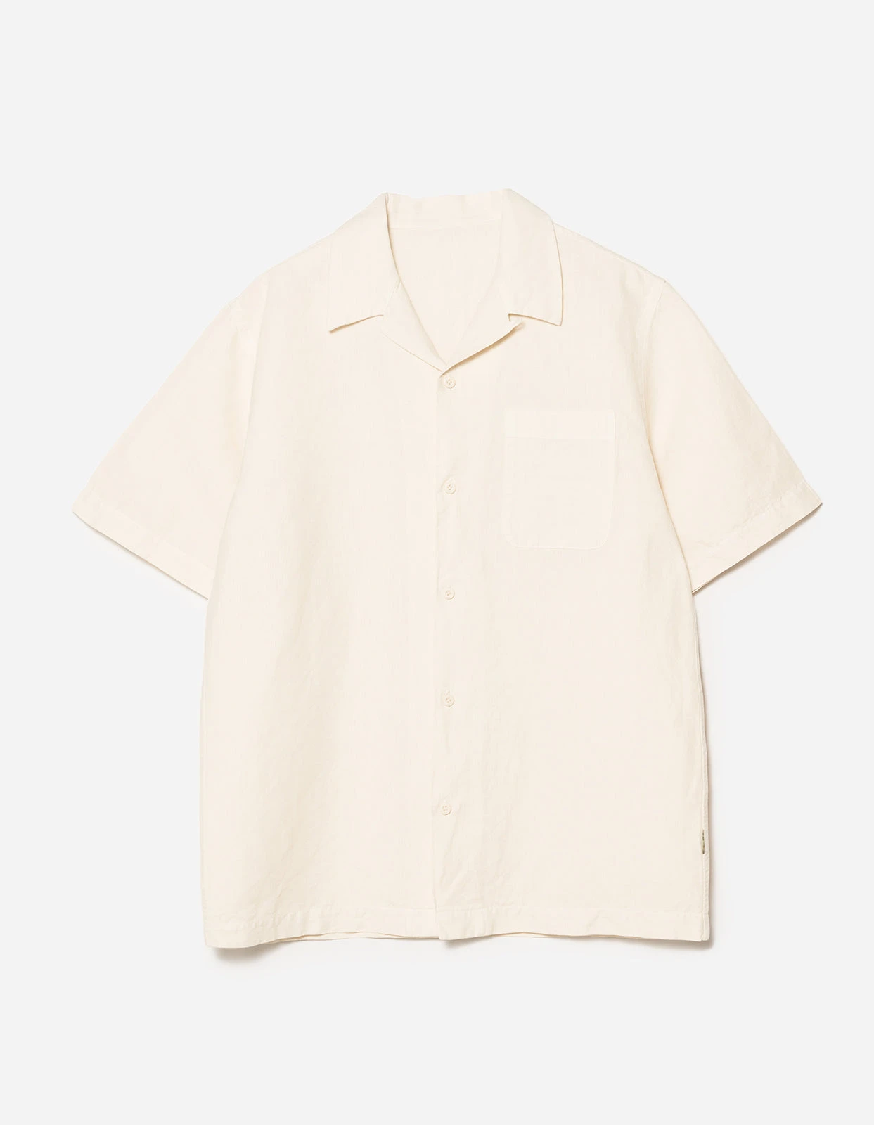 Relaxed fit short sleeve shirt with a double notched camp collar and patch pocket, made in a lightweight hemp cotton.