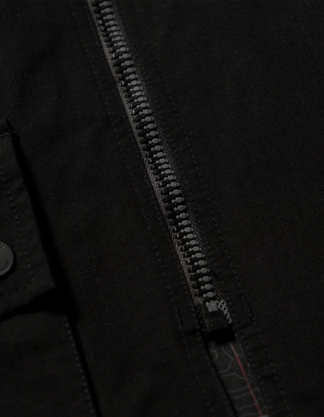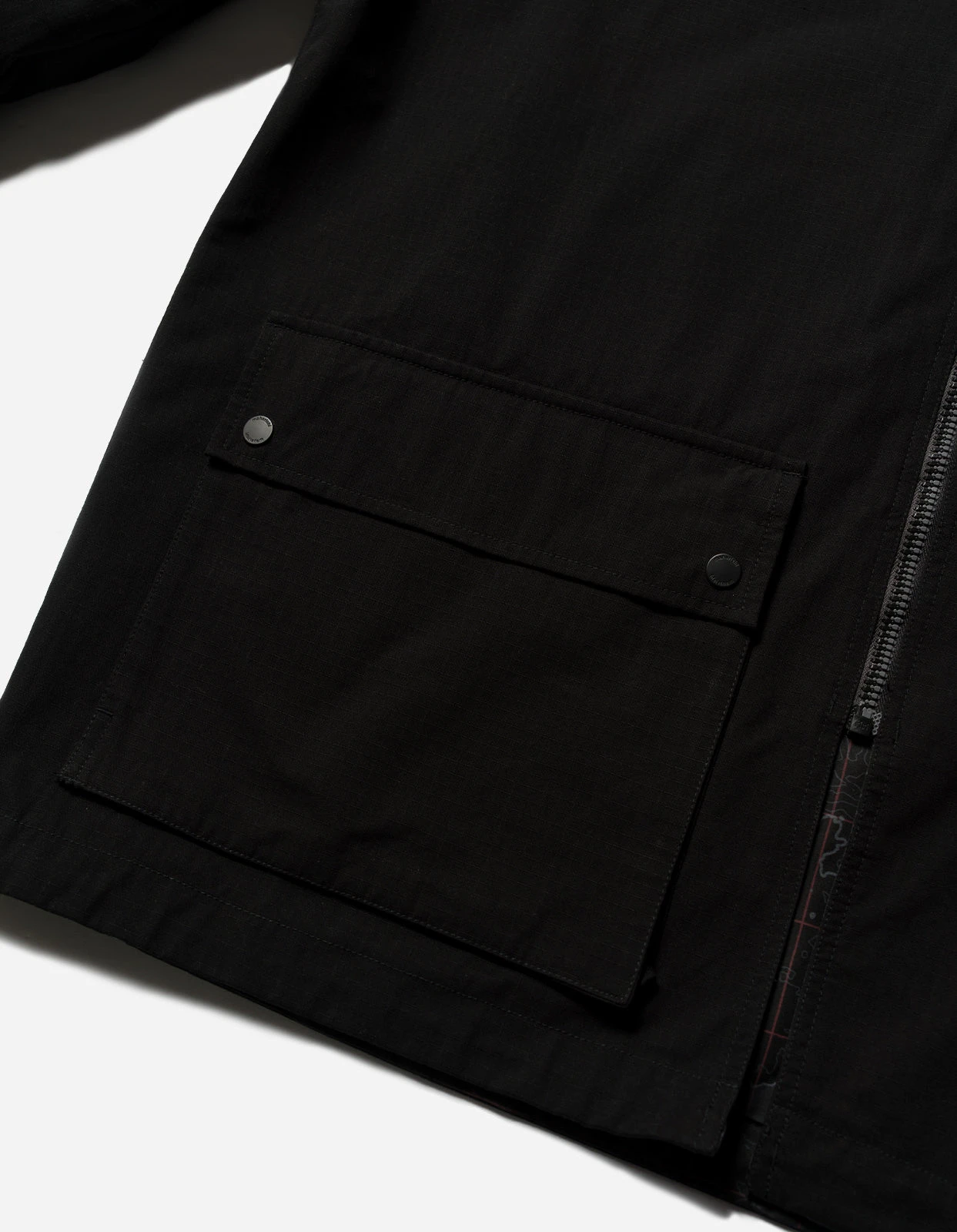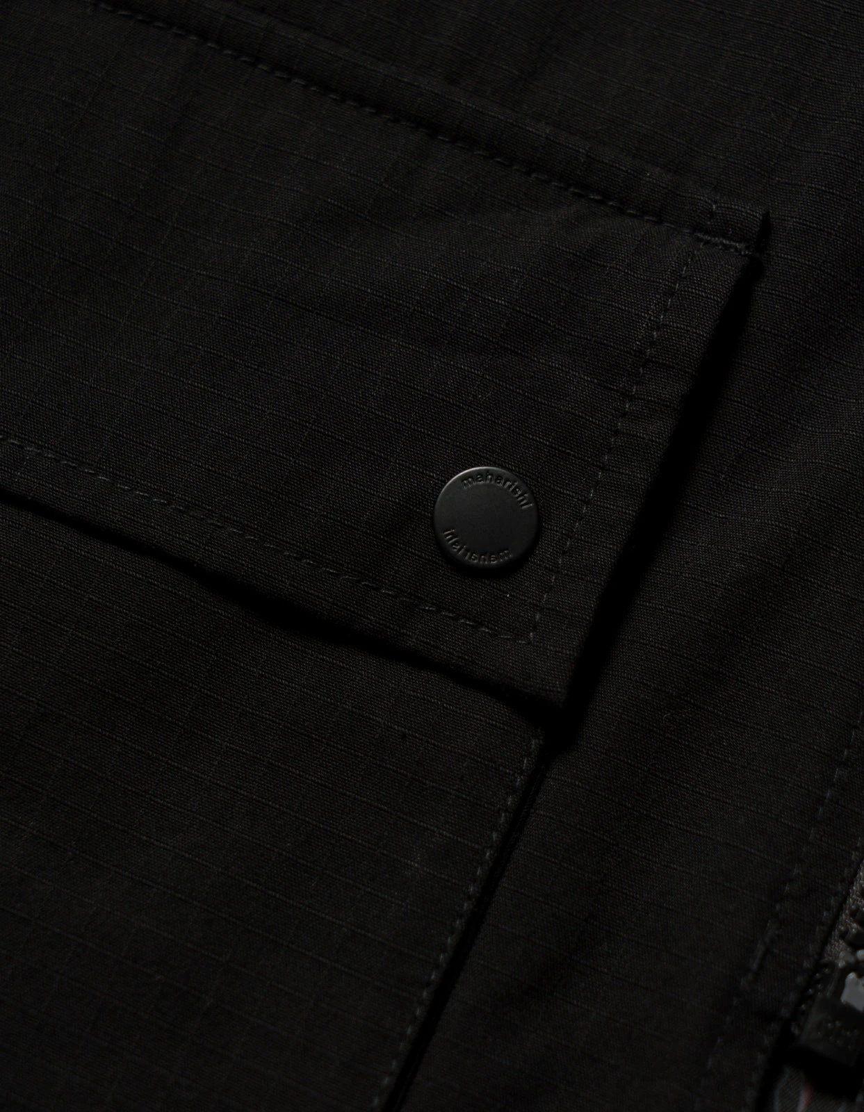 A mid-length parka of Cordura fabric with an asymmetric closure and articulated elbows. Features plenty of pockets; a large flapped cargo, hand-warmers and a secure zip on the inside. DPM: London Contour pattern on reverse. Maharishi explores topographic maps for it’s Great East/West Outdoors collection, with a topographic Ordnance Survey map of London, showing 2-3 Great Pulteney Street in the centre.
