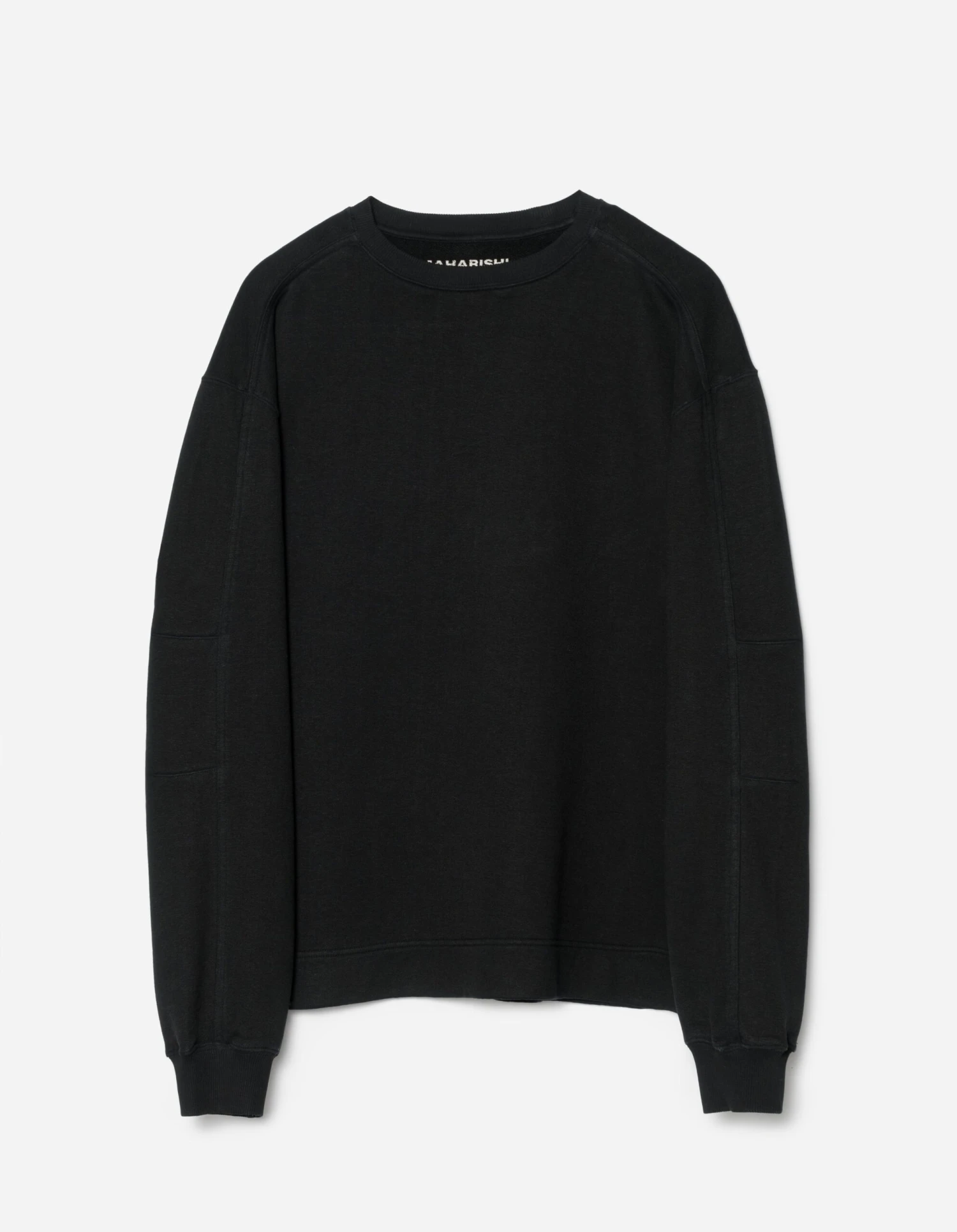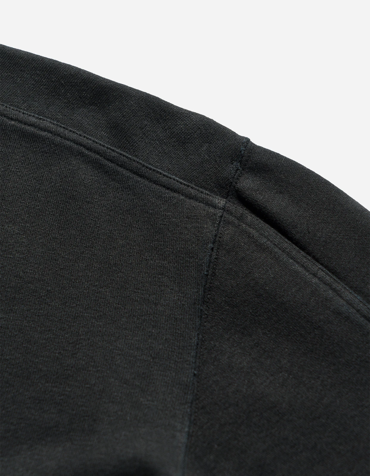 Heavyweight sweatshirt of garment dyed hemp blend, cut for a relaxed fit. Features articulated sleeves.