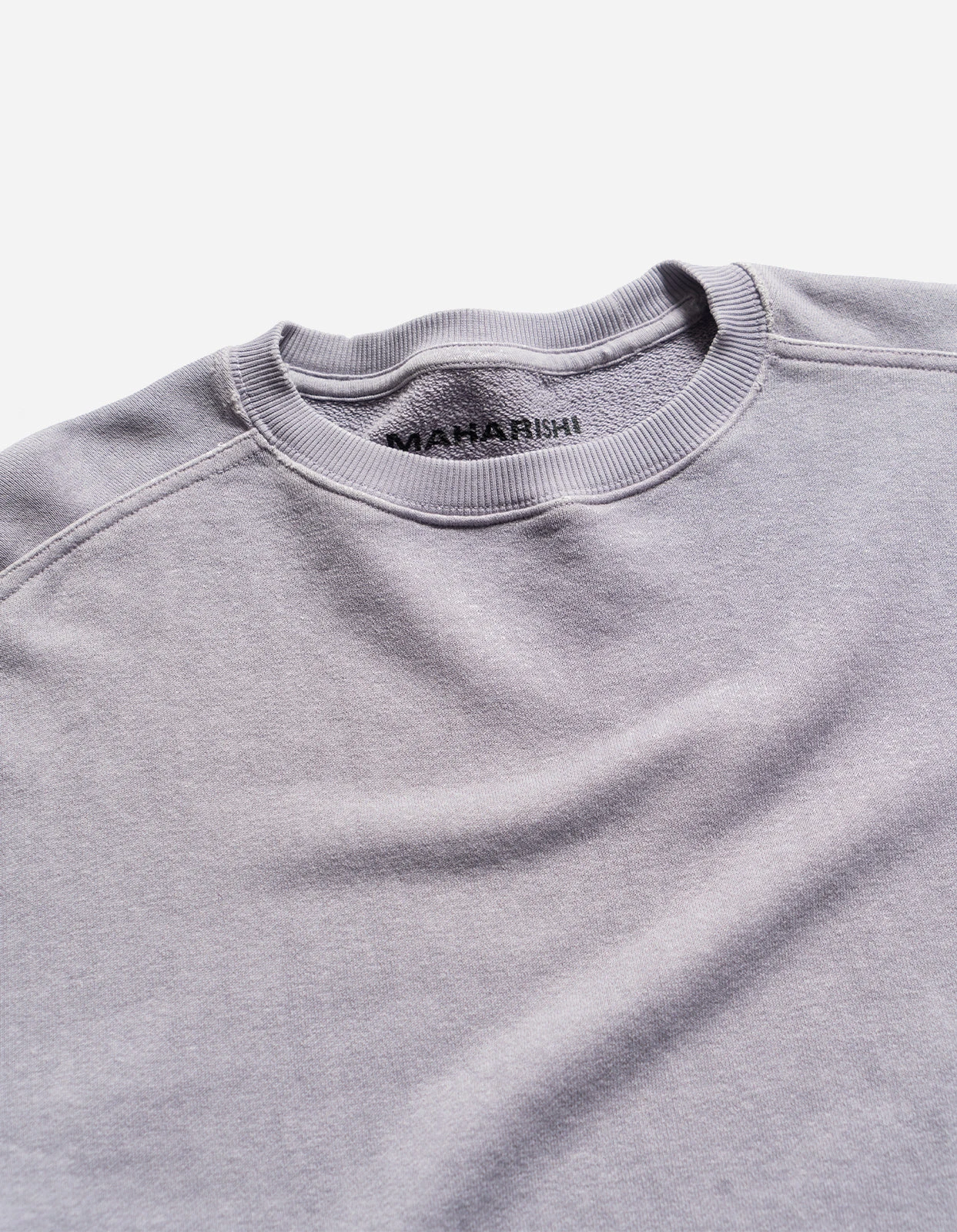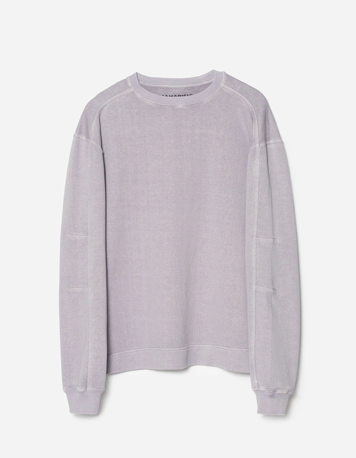 Heavyweight sweatshirt of garment dyed hemp blend, cut for a relaxed fit. Features articulated sleeves.