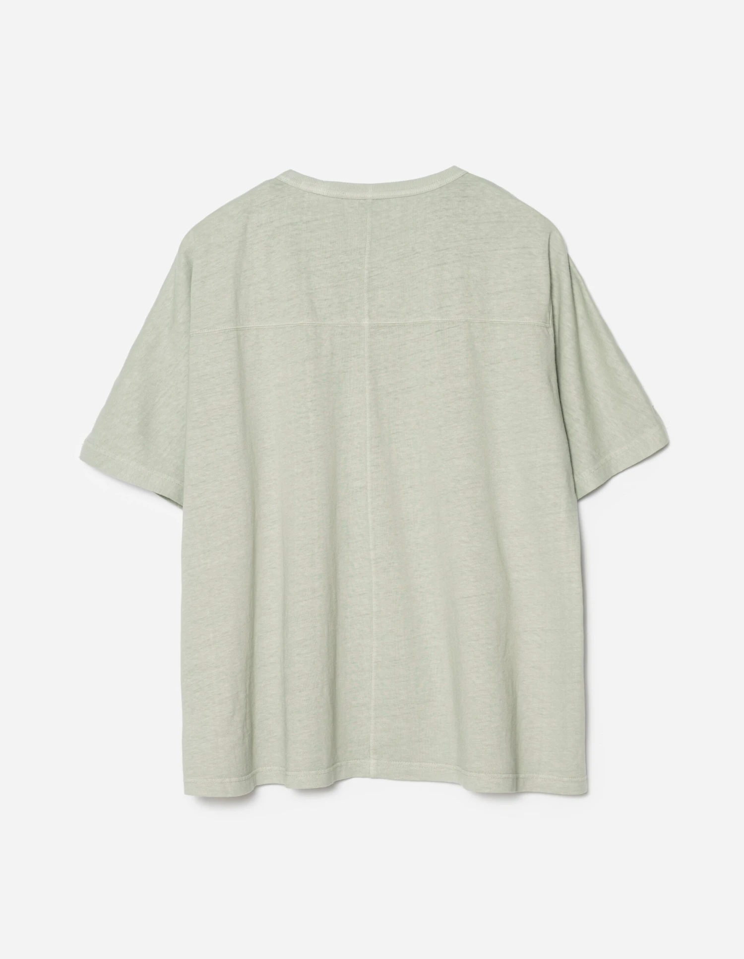 Short-sleeve t-shirt in elongated cut, constructed from an eco-conscious hemp/cotton blend and stonewashed for a soft and worn-in finish. Stylized contrast seams on both sides exposing the cut & sew nature of the garment.