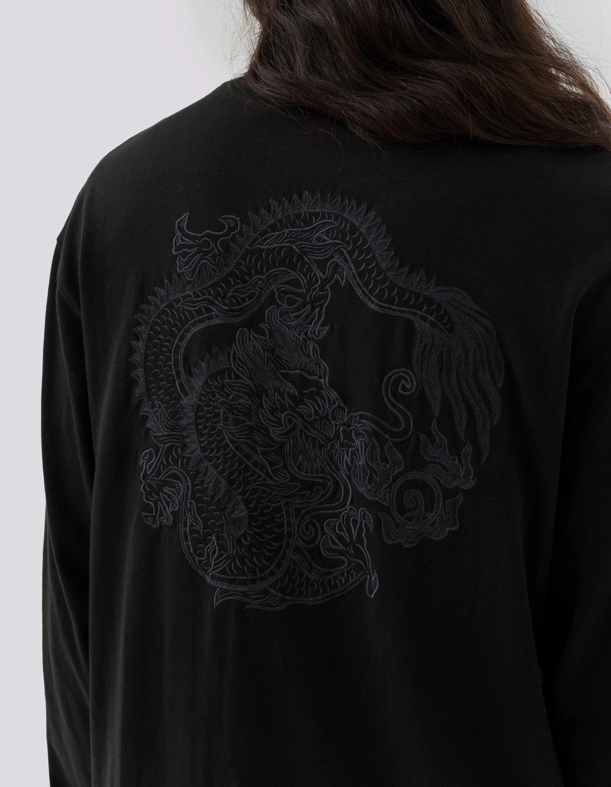 Organic cotton long-sleeve t-shirt, cut for a relaxed fit. Featuring a Maharishi chest script, dragon back hit and a Thar hem ornament in tonal embroidery.