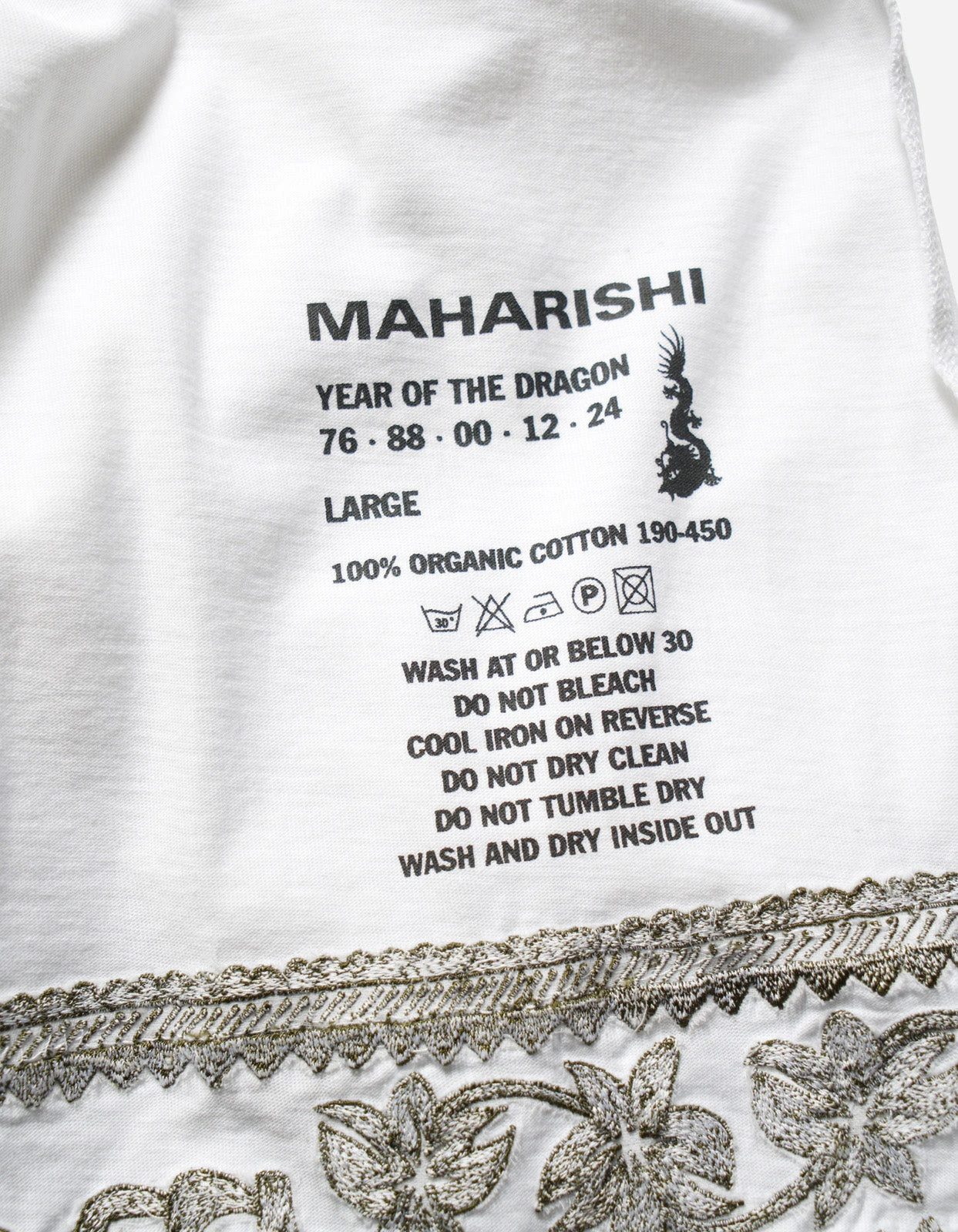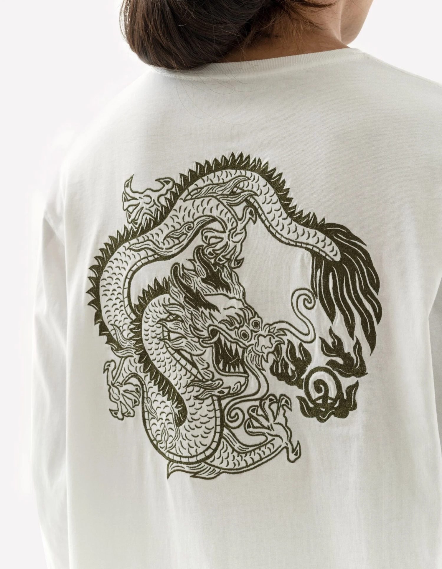 Organic cotton long-sleeve t-shirt, cut for a relaxed fit. Featuring a Maharishi chest script, dragon back hit and a Thar hem ornament in tonal embroidery.