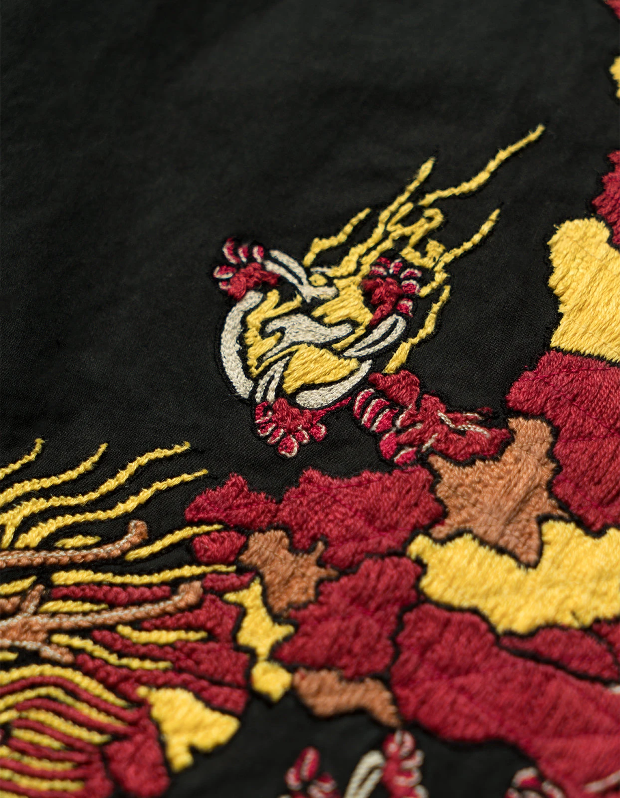 The artwork for the Tour Dragon Map capsule traces an early 19th century painting depicting a map of Vietnam as a dragon, while being a nod to the tour artworks of U.S. soldiers, embroidered onto jackets as a souvenir before returning home. The stylized map was conceived during the throne of Emperor Minh Mang, a rigid Confucian known for his opposition to French involvement in Vietnam.