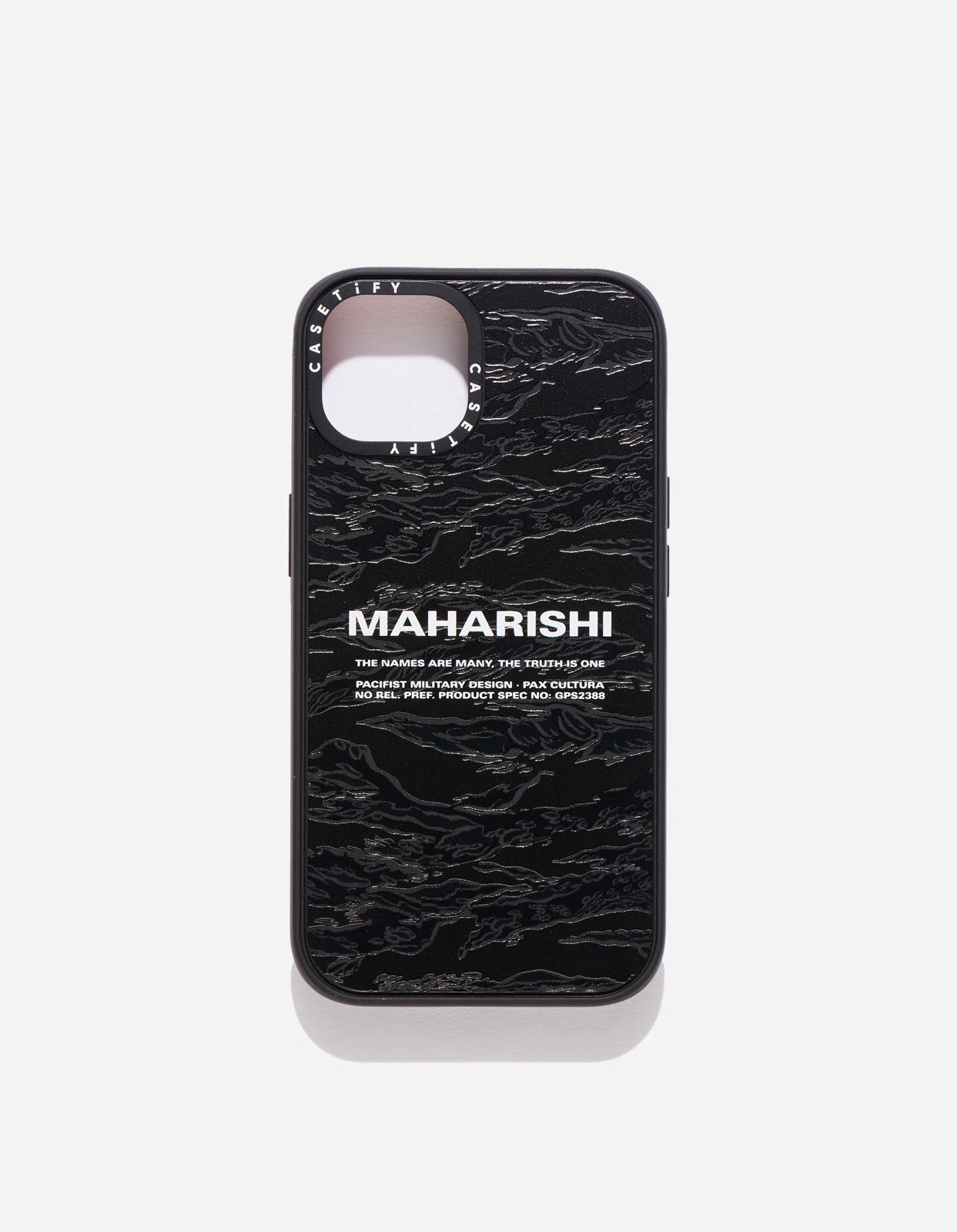 Maharishi x CASETiFY iPhone hard case, constructed from a recycled and BPA free plastic. Features a central MILTYPE print and full coverage for side/volume buttons through an integrated casing.