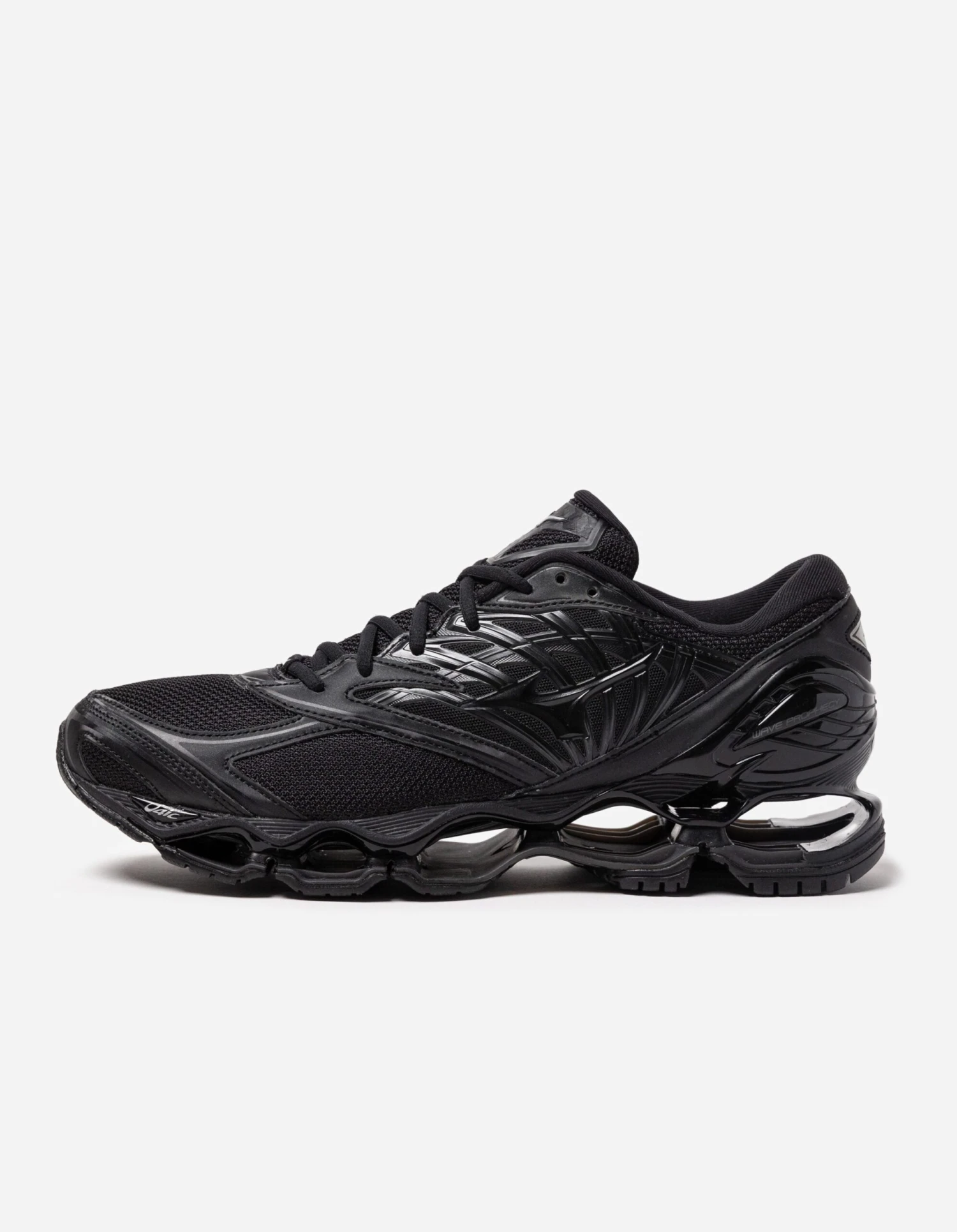 The Mizuno Wave Prophecy LS Black trainer is designed for maximum cushioning and stability. The midsole is constructed with Mizuno Wave material for cushioning and support, while the U4icX foam provides long-term resilience. The outsole is designed with X10 rubber for durable traction and control.
